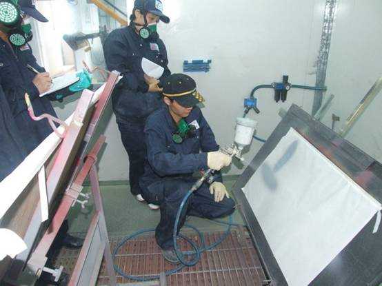 老師們進(jìn)行調(diào)配底漆