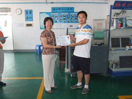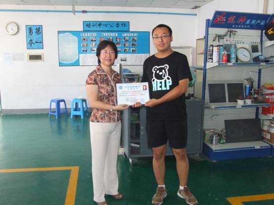 我司彭經(jīng)理頒發(fā)“汽車車身修復(fù)技能認(rèn)證合格證書”